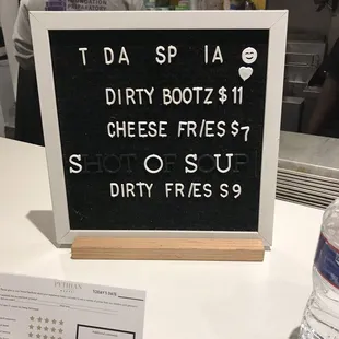 The menu tonight. I ordered the Molly and the Sliders
