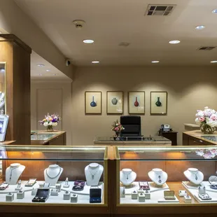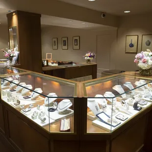 The staff seems nice at first, but the older lady who started the business follows you around like hawk if your attire isn't up to their standards. She followed me and my wife literally the whole time we were there. Even after we notified her we had purchased a ring from them. Made no difference she was glued to us the whole time. If you leave jewelry for any reason good luck getting a promised called back, 4 calls later I finally got the ring I had left there to be fixed. If you dress like an evil 80tys preppy draped in pastel's, this place is prefect for you. If you dress more casual, expect to be watched and asked a thousand times if the staff can help.