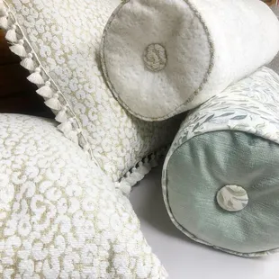 I only had custom pillows sewed here along with some custom shades. I also bought a few sale knick-knacks which are wonderful.Nina, the owner, did not like how the zipper on one of the pillows looked. She insisted on sending it back to her seamstress for it to be perfect. I really appreciated her attention to detail. I used to sew and the shades and pillows were beyond perfection!