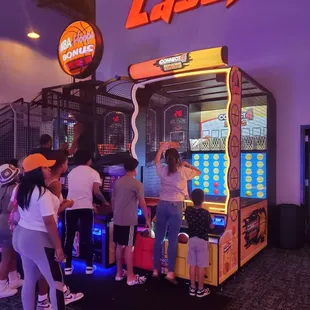 In a city where there's nothing hardly for kids to do this spot is great. My son is so impressed with everything. We really played here for 3 hours. From sun to sundown. My kid was so worn out he went to sleep soon as we got inside. We tried the experience out as much as we could. I also got enough credits so we could do more than three games. We ate here also and that was cool and filling too. My son really hated the credit prize options. Other than that it was a nice time.Soon as we got there-This spot was packed but yet it's soooo big on the inside that we were still comfortable. If you have a son that is a gamer and credit swiper than I suggest getbthe 25$ dollar card and they'll have a 100 credits. Which is enough to keep them occupied for at least 45 minutes to an hour depending on the type of games they decide to play. There were also some faves I enjoyed so I won't lie here- I went back and got my own card. Many of the games were within reason too. 3 credits...4 credits....and then the more jackpot opportunity games were like 8 credits to like 10 or 22 I believe- I know 8 credits for sure. The one that was expensive was the photo booth ones! Those were 20 credits. But you get TWO photos booths pics so me and my lil boy was excited. Very fun. Very laid back. Almost every game worked too which made me even more excited. There was stuff for kids and stuff for adults so I really was pleased!! Bowling- Yes there is literally like a 4 lane situation that's lifted higher than the game floor with Bowling lanes. It's an additional price though. Which is your standard $14. 50- to like $15 bucks a person. My kid didn't want to physically bowl tho because he saw the interactive game Bowling and was more like I could just use my credits. I'm glad he looked at all costs when trying to save momma some money. I kid you not. But to be honest the experience it would have been worth it. Everyone looked excited exile Bowling and that's what it is all about. Family experiences and family establishments.Are Throwing-So it's also an additional price. I witnessed some cats that was too serious over there by the age throwing cages so I got discouraged and was like nah. My son still attempted to go over there but they informed him he had to be 18 or older. So I'm happy they disappointed him and not me. (LoL)LAZER TAG-So, Lazer tag was extra! One round of Lazer tag was 7 bucks a piece. Not bad at all considering the fact that we had just came from gaming and you get a time ticket so you definitely want to be on time when the Lazer tag doors open so you can play. If not you would have to wait for the next session. Yall this spot was huge. Like games and Lazer tag. Which was an upstairs and downstairs situation for just the Lazer tag room. My son bucked me up to play with him so in addition to the (2) $25 bucks game cards I paid an additional $14 for 1 round of Lazer tag for me and the kid! Even though it was like 15 MINUTES OF PLAY a round it really felt like 45 minutes to me. I was so tired and I eventually had to tell my son to go up and down the side stairs without momma.. I covered him as much as I could on the first floor.. I can't lie it was fun though. Once that was over and we turned in everything, we went back to spending credits on the games!More with Games-So we playedd just about every game that made sense to us. We did the hoops, football throwing, wheel of fortune, batman,killing zombies,Pac Man,on the sea killing viscious sea animals, Halo, shooting, spin the wheel, motorcycle riding , monster truck driving etc. Listen these kids some options. Very very fun. I enjoyed myself.RESTAURANT-You have to wait to be seated. You come to the restaurant to get the solid Food options. Stuff like Mozzarella sticks/Burgers/Wraps/Salads/fries/pizza/chicken tenders etc. The prices were good too. Mt son really loved the Mozzarella sticks because it was the right amount of cheese and crunch. The tenders were ok and the fries were good too. There's a Bar right across from the restaurant seating which makes goimg get an alcoholic beverage convenient for parents with kids. There's like two or three tv's so we were able to catch some of the LSU game while eating. We still had some credits left so we went back to gaming after eating.Prizes-After all that gaming we did we barely had any credits enough to get decent prizes. My son was like wow that's it???. I'm like welp son at least the experience was fun. He felt bamboozled (LOL). A really good lesson for him to learn after all that hardwork we put in. He got some sand puff , a bouncy ball and a piece of candy (lol). So I took a star away because my kid went sad abiut his options.Overall it was fun. We will be back once I get paid again. Very kid friendly and there's a lot for the kids to do.