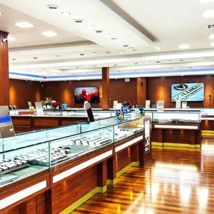 I have been to many Jewelry stores throughout my lifetime. I don't usually do very many reviews but I believe this one definitely deserves to be noticed. I brought in three articles for Repair thinking I would have to drop them off while having to wait anywhere from 2 to 4 weeks or longer before I would get my jewelry back. (Which is the usual time for all jewelers as you know.) They told me they always have someone on site, and that they could have all three repairs done within an hour. When I tell you that I was shocked that is an understatement. I absolutely had to write this review. Because the whole experience was beyond delightful. The gentlemen running the store are very polite and courteous and always there to help no matter what you have come in for they will go to great lengths to make you walk out with a smile on you face. And they do a very good job of it ! thank you Goldman jewelers