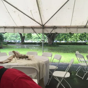 I recently attended a wedding and reception here. I was looking forward to seeing my friend get married. On the way there, it was lightly raining. We figured surely they would have a contingency plan for rain. We got there and the rain had stopped but the seats were wet. I noticed that the bar was uncovered and it was clearly going to rain again. Towards the end of the ceremony the rain started. we ran for the tents. We got under the tents just in time. Unfortunately the tents didn't help much. There were no sides to the tents and the wind was blowing the rain in. There were two tents. One had some tables, the cake and the food. There was a short walkway to another tent. That is were my husband and I went because there wasn't room in the first tent. The walkway between the tents began to flood and the flap connecting the two tents came lose, causing a huge pool of water to come down. Luckily no one was standing there they would have gotten soaked. At this point no one could cross over. My husband took it upon himself to go reconnect the flap because no one working there attempted to do it. If you were okay with walking through the little flood, you could now go through because he fixed it that flap. I felt bad for the poor bartender who took it upon himself to move all the drinks under the tent by himself. He was completely soaked and still working. There were also leaks in the top of the tent. Long story short, I'm sure this isn't the first time it's rained for an event and do believe they should have been better prepared for this.