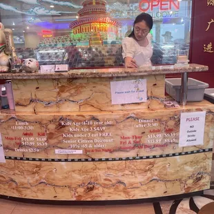 The food was terrible, the only good looking desert was ice cream, and it was out of order . It was overly expensive and the food was bland. Definitely don't recommend!!