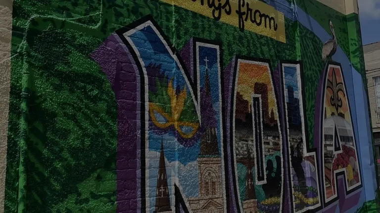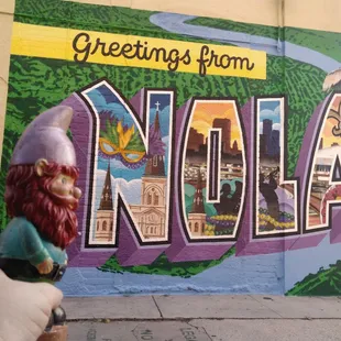 The Greetings From NOLA mural came from a couple of people who travel around in an RV, and New Orleans stuck out to them. After much time spent looking around to be able to do a mural and asked many places, looked up the rules, and had issues coming up with a wall to paint on. I guess you could say they hit a few walls along the way. Supposedly there are some easter eggs hidden in the mural like an alligator, which is funny since they are across the street from The Great Alligator Museum! Anywho, I highly recommend this spot for a photo op for everyone! This is close to many things of interest, stores and restaurants.