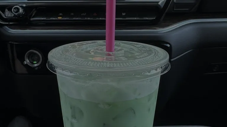 a person holding a cup of green liquid