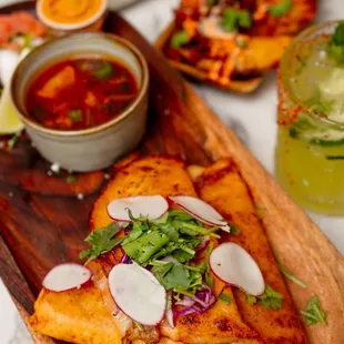 Ah, new restaurants are always interesting! Ok, so this is a new location, not a new restaurant, but it's close to home, so we checked it out.First impression is the place is well appointed and very pretty. There were some heaters in the vestibule to keep customers comfy on the cold, but no one was outside. We got here late on a Saturday, but there was a 40 minute wait for a table. Luckily, there were two spots at the bar!By the time we got situated, the thumping of the Saturday night bass was banging in our ears. No big deal, it's late on a Saturday, but it was still a lot for us old people. Just something to keep in mind depending on your mood. :) We powered through, though, and it was totally worth it.Petunia: wanna share something? Me: sure, what ya thinking' about?Petunia: enchiladas!Me: then no. The upside to Mexican inspired cuisine is I usually get my own plate - she is as much a fan of enchiladas as I am not, so it works out perfectly. ;)I got the tacos - Playeros, to be exact. Shrimp, bacon, cream cheese stuffed jalapeno, esabeche and chipotle mayo. A jalapeno popper taco with shrimp??? Sign me up! I was too excited to remember I prefer flour tortillas, so they came on corn...but these were excellent tortillas and really added a nice extra layer of flavor to the dish. I wasn't expecting them to be so good. I mean, I expected good, but these were like explosions of deliciousness in my mouth. I shouted, "OMGOSH?" Luckily, the music was so loud no one heard me, but I'm sure the look on my face made SOMEBODY say, "I'll have what he's having."So should you. What a delicious, wonderful, terrific taco - the flavors - briny shrimp, smoky bacon, the creaminess of the jalapeno and all the pieces made a whole that was definitely greater than the sum of the parts.The tortilla soup was good, the salsa for the chips was spicy and perfect, and the whole meal was very, very nice.Petunia enjoyed her enchiladas, which came with a grilled chicken breast. I had to taste it - let me say this was the most delicious grilled chicken breast I have ever had, and I like to grill chicken! It truly was perfectly done and the grill flavor was just amazing.If you haven't decided I liked the meal, lemme just say I absolutely did...get in here and get some tacos to share, you're gonna be glad you did.