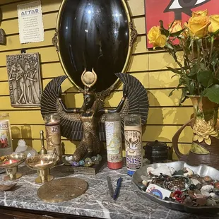 amazing products and very friendly staff! had some stuff my locals stores don't! i bought a small statue plaque of hecate for my altar and a hecate room spray. a morrigan oracle calling deck. definitely not like some stores there that kind of mock the spirituality....absolutely . , .