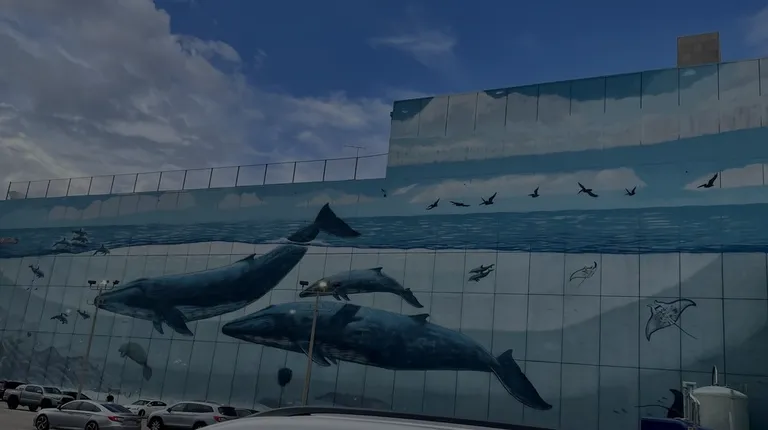 Humongous Whale Wall covered the entire side of the building