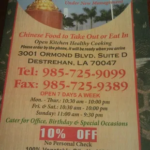 Best take out Chinese food in the area! Quick and convenient! Amazing food, really - nothing to complain about. I'll continue to give them my business!