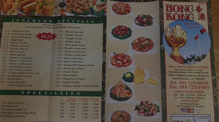 Busy Friday night, the phone is ringing constantly. But only took 12-13 minutes for my order. There was at least 2 cooks in the kitchen busy with woks. I ordered two dishes and each one is enough for two meals. I gauge all take out Chinese place with two things:1) is the food good enough for you to keep eating even when full, 2) did you search for meat in your dish. Hong Kong pass this this test with no problem whatsoever. Before I realized, I was stuffed! And still had half of the food left! It was very satisfying, especially when you have craving for Chinese! Excellent!