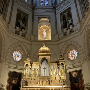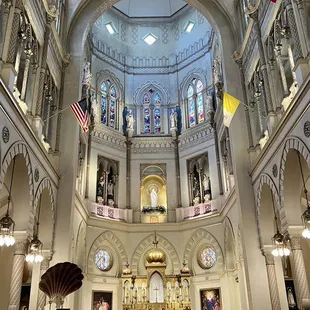 Love this church that blends so many architectural styles. The church was originally completed in 1857. In the 1920s, the church was significantly damaged due to the construction of the Pere Marquette building next door. The floor of the church actually split in half requiring the church to be disassembled due to safety reasons in 1928. The new church building which incorporated many elements from the original church was dedicated in 1930.The Jesuit Church uses design elements from Gothic Revival, Moorish Revival and Byzantine Revival architecture. Love the Moorish rosettes and arches. The nave is soaring and open. The Moorish domes on top of the altar as well as the miter-shaped arches are so reminiscent of European cathedrals built in this style. The stained-glass windows are so beautiful. Definitely walk around to enjoy the elements, statues and prayer chapels. The altar is stunning. It was handmade in France and is plated with 24 karat gold. The design, by James Freret of New Orleans, won first prize in the Paris Exposition of 1867. There are more than 600 pieces to it. The statue of St. Peter is a bronze replica of the statue in St. Peter's Basilica in Rome. Similar to the statue in Rome, St. Peter's foot is worn down due to so many people that have touched it. The mosaics are beautiful. One represents Our Lady of Prompt Succor to honor two miraculous interventions by Mary in New Orleans. The first miracle was to save the old Ursuline Convent from a fire that ravaged the city in 1788. The second was a plea to help the Americans soldiers in the Battle of New Orleans in 1815 against the British.Check to schedule to enjoy a tour of even a service. I was able to catch the end of a Sunday morning organ service. So lucky to able to listen to the beautiful organ and soloist in this historic Jesuit church.