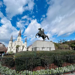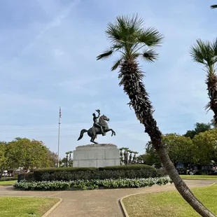 Good old General Jackson on his horse. Nice gardens and grass and walkways and park benches. Very peaceful by the giant Church and museums.