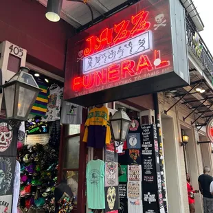 The Jazz Funeral is souvenir shop with a voodoo theme to it. They sell t shirts,mugs,shot glasses,magnets and other items. The voodoo theme is very popular with anyone.