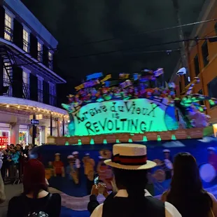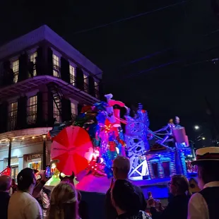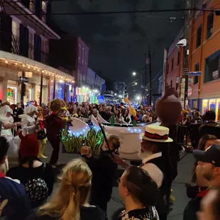 Krewe du Vieux is my favorite Mardi Gras parade. This statement should carry a lot of weight since I detest Mardi Gras.So why does a guy who hates Mardi Gras love Krewe du Vieux? Here's why:Krewe du Vieux is composed of several sub-krewes, each with there own version of the main theme. The parade is mainly a walking parade, with mule drawn floats which handmade and much smaller than traditional parades. The members walk and interact with the crowds. This can't be said for traditional parades where riders are sequestered on-board their lumbering float. Want to dance with the parade? Krewe du Vieux is all about crowd participation.Themes focus on local and national events with a strong satirical leaning. The parade is definitely adults only, so if you're offended easily, stay at home.My favorite group this year was the Krewe du Mishigas with their theme of Jewpacalypse. I may be a bit biased since Yelper Joshua B. was in the Krewe.I highly recommend this parade. We watched it on the corner of Elysian Fields and Royal which seemed to be a perfect spot.