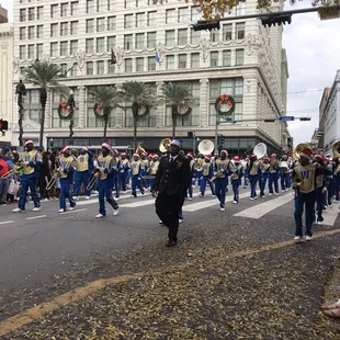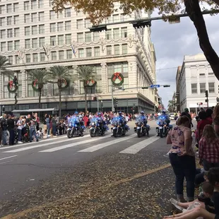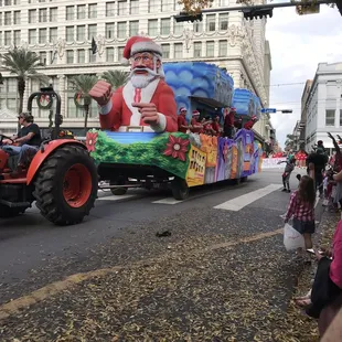A small Christmas parade but it is still a min representation of the NOLA parade culture with throws of beads and candy and dance troupes such as the The Muffalottas the Pussy Footers and Camel Toes Steppers and HS bands. Only 10-12 floats but the parade is slowly growing bigger each year. Its a good small kickoff parade for the Christmas season.