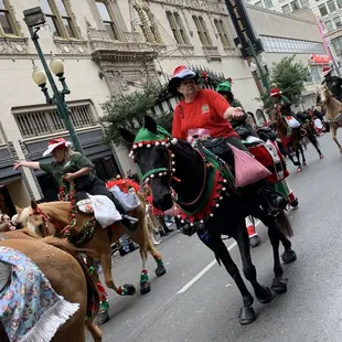 I always miss this parade for one reason or another... working, out of town, etc. So I finally put it on my list of things to do this past weekend. And... yknow it was OK. First I am so very grateful that Carnival krewe floats MUST (by law) remain ad free. The sponsored floats are kind of sad to me. OTH, if I won the lottery I would totally sponsor a Jen's Friends float in all these ridic parades and have a moving party. So yeah. 10 floats (yawn) and beaucoup marching groups, which I really enjoyed how the different groups jazzed up their outfits with Holiday flair. Also I'm going to push this review up to a 4 for the McMain band which reminded me why I miss catching parades downtown. That drumline echoing between the buildings is the BEST!So if you're around, go check it out but don't make a special trip in for it. But as always, any parade is better than no parade!