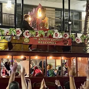 Orpheus is the first super-Krewe fully open to membership of both genders, which has a direct link to hollywood and the music industry. Started in part by local hero Harry Connick Jr, there are abundant glimpses of famous people, many of whom, are riding in their first Mardi Gras parade, so they are genuinely excited to play to the crowds.All Hail Orpheus!