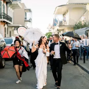 Erin & Jack second line from Lafittes Hotel & Bar
