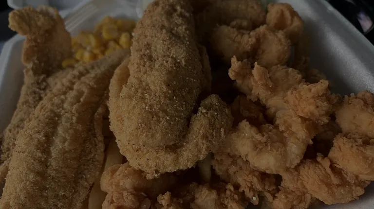 Fresh out the fryer, perfectly cooked golden delicious shrimp and catfish. Side of corn and coleslaw was great too.Fries were crispy to perfection. Pulled up to the pick up window and didn't even have to wait five minutes and my order was done. Friendly face at the window, decent prices and convenient location. First time here and won't be the last.