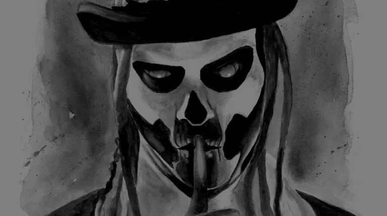 Black and grey watercolor portrait of Miles Davis.