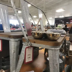 Faux leather and iron Bar stools $60 each! Not a bad price.