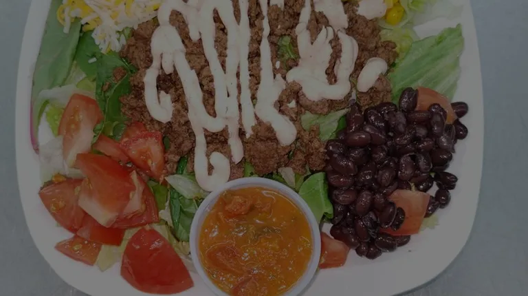 a plate of food with meat and lettuce