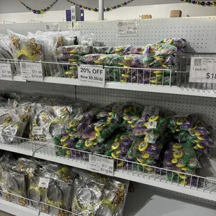 Since my wife is riding in Mardi Gras, she wanted to go by and pick up a few things. I was impressed with the selection that they stock. Lots of different beads and other throws. What I was most impressed with was the people working there. Very courteous and helpful. Would definitely shop here again.