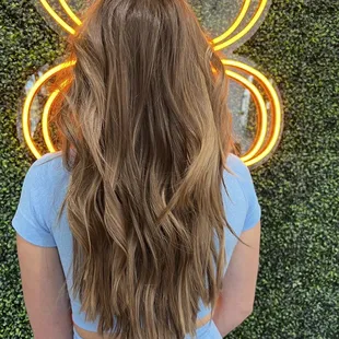 Highlights, cut, blow-out, and curl by MaryBeth at Miraposa Salon.