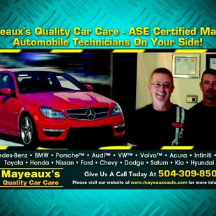 I highly recommend these guys. They are very knowledgeable and professional. Their prices are reasonable and fair. They are my go to guys when it comes to needing repairs or services for my Mercedes CLK500 AMGIf you own a German car, this is the place. Don't take your car to Fritz and Hans, they're a rip off. Just look at their reviews. Take it to Mayeaux! Trust me.