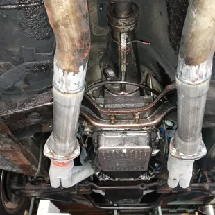 I took my car 2 Terry muffler to have some collectors put on from some new headers. that was a mistake. he put 2-in pipe around 3-in collector fill the Gap with gasket material I did not find out until 2 weeks later when I heard a tapping. went to change the gasket that's when I noticed what he did.. brought my car to miety muffler. was the best move I could have and should have made at first.. the guys really did a good job. thank you for correcting someone else big mess up