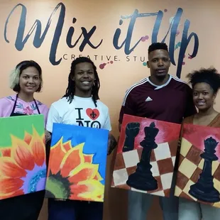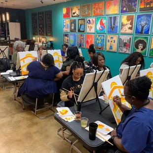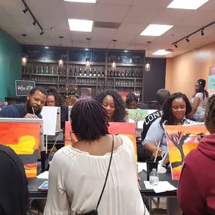 This was one of the highlights of my birthday trip to NOLA! I'm almost at a loss for words regarding the wonderful time that I had! The owner Andrea is warm, hospitable, and was very accommodating. The atmosphere with all of the beautiful ladies felt like home-away-from-home and like I was amongst sisters. The art studio itself is nicely decorated, clean and comfortable. There was no clutter and there was space to move around and be social. The bar is well stocked and has nice options for purchase. I went on a Wednesday night and they have special food and drink on that night which was a plus. Due to our busy time in NOLA we hadn't had time to stop for a bite before the class started and our appetites were ready for the delicious food when we arrived. The artist who led us in creating our masterpieces was kind, patient, and encouraging. At a point during the process I was loosing steam and didn't think I would make it through to finish but even with it 1/2 finished she provided guidance and feedback that prompted me to continue. By the time I got my second wind, I was rocking and rolling! My painting actually turned out better than expected being that I'm an amateur artist. This experience will be one I will never forget nor will I forget the beautiful women who touched my heart and made my trip/birthday celebration extra special! I almost forgot to mention that, Andrea the owner gifted my friend and I two beautifully decorated cups of which we can use to sip our favorite drinks she also gifted us a bottle of wine on the house! The next time I'm in NOLA, I must stop by! Lastly, I hadn't considered that my canvas may not fit in my luggage when it was time to leave. Thankfully, I was allowed to carry it as a carryon item at the airport. All was well! Thanks Andrea for a memorable experience that was relaxing, positive, and exciting all at one once!