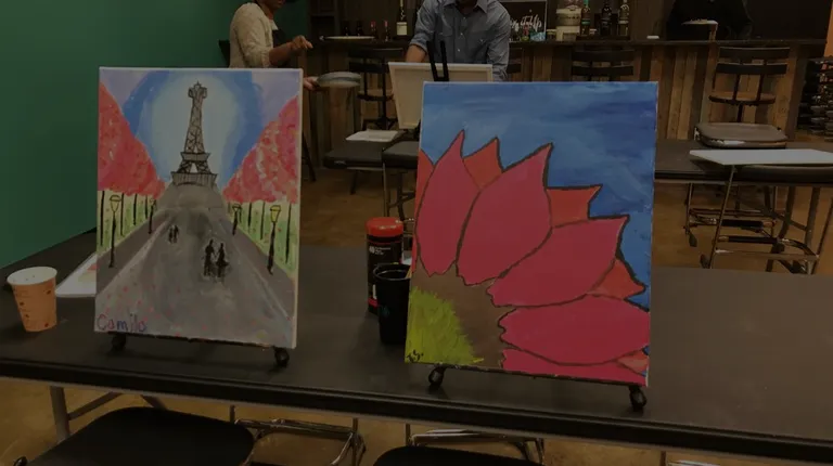 So my husband surprised me bringing me here! Honestly everything about this place is great! So for starters the workers are very polite and helpful, it's my first time painting on a canvas so I got the one they draw out and you color in, but if you want to free hand you can which is cool. Anyways they have really cute/fancy bar with a variety of drinks and cool events they host throughout the week. The place is super clean and I highly recommend for people over 18. I'm definitely coming back and will update you guys!