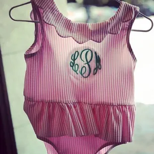 Would def. recommend this place for monogram services. They have a lot of threads, and different font/sizes to choose from. And if you're not too experienced with monograms, the staff will help you choose the right one to fit your needs. Product turned out amazing, and quick turn around. Not to mention, great prices.