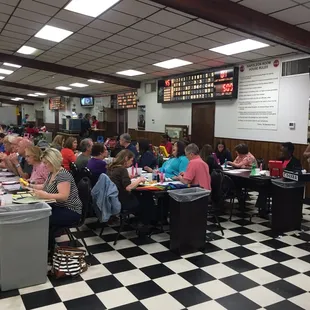 The people who play bingo here are really intense, so it can be kind of intimidating if you are a beginner. There are also so many people playing the odds aren't great.They have an awesome birthday special though. Each krewe offers a free pack the day before, on, and after your birthday. They are worth $10 and they have 1-2 games per day. They also give you a free desert on your actual birthday, which is really tasty.All of their food looked pretty good, better than I was expecting from a bingo hall.