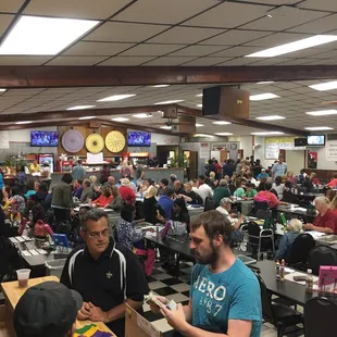 First time going last night. Won't go again. The women who walk around were super nice and helped us soo much, but the caller at one point was calling 3 balls in about 3 seconds. Then they explain nothing as you are playing correctly. I let management know how I felt, very nicely. I got one of those blow smoke up your butt responses, "While I understand your frustration...blah, blah, blah" Then the caller is literally fighting with patrons from the mic. One girl carrying around pull tabs gets in a fight with another girl walking around with some. If you don't play Bingo very often, do NOT go here.
