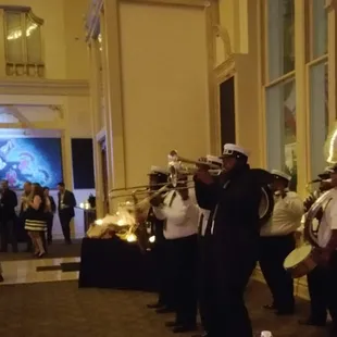 Historic chic NOLA wedding venue.Visited as a guest to a December wedding at the Eliza Jane / Board of Trade. Though renovated in 1993, the BoT maintains a vintage shabby aesthetic that seems similar to that which drives designers at Anthropologie. Otherwise, architectural and interior design features are on the spartan side - the posh Roosevelt Hotel this is not.Courtyard fountain offers a pretty location for photos. Light rain reduced its use, but improved the shine of candlelight.High marks for exclusive food service vendor Pigeon Caterers. Though I have no idea how much they charge for the buffet spread, memorable dishes included shrimp and grits, gouda mashed potatoes, and crawfish etouffe. Bananas Foster were a cool effect, but ended up too soupy for excellence. Reasonable bar selection of mid-level wines and spirits with simple mixed drinks only (no sazaracs, French 75s, or gin fizzes at this wedding) - again, don't know what our friends sprung for. Unique is that leftovers were packaged for the wedding party to bring home.Second line up Poydras was pretty special. Must do.