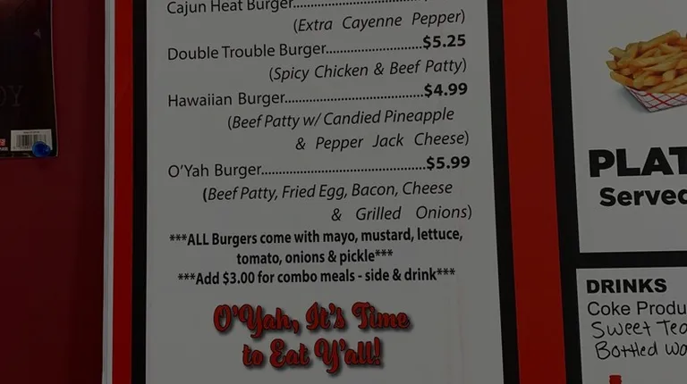 I found this spot last year while driving through the state. I loved it so much and bragged to all my friends about how amazing the food was and how friendly the staff was. The Poboy is the best I've ever had. The following year while driving through I promised to take my girlfriend to get a Poboy. O'yahs did not disappoint. Everything was prepared fresh so you know it was delicious. Can't beat that shrimp from the Gulf of Mexico. I also had the Jalapeño poppers. Yummy. I didn't have the burger but two gentlemen sitting at the next table did and they enjoyed it mightily. Maybe next time I'll try it if I don't order 2 poboys for myself.