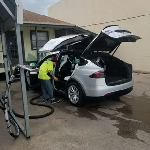 Been there several times. I have always been satisfied when they are finished. They do the little extras when shown. The RR is vacuumed in and out with trunk. I do not recommend the tire dressing. If not dry it may get on the white body when rolling.