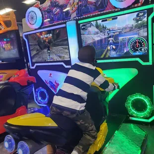 This spot tired my son out. 3 hours and he ran through my money with buying points on these games... i will WARN you that your points are added to a card..just like CHUCK E CHEESE. THERE'S lazer taag and bumper cars, 3 d mini theaters, virtual games etc. There's an area for babies/little ones too. There's a concession stand where you can order food and drink.