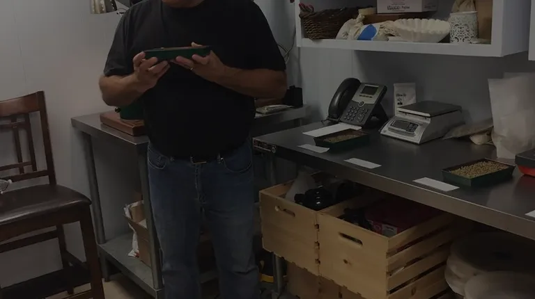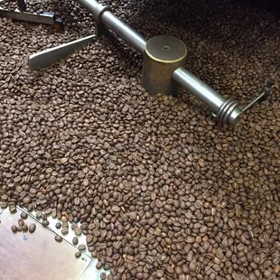 In the warehouse, where the coffee is roasted