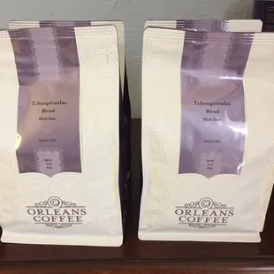 two bags of coffee on a table