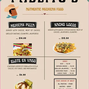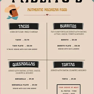 We have had their beef and pork Quesadillas and absolutely love them. Also the tacos and burrito are very good too. The menu is small and has some authentic Mexican dishes. The avocado sauce is spicy but bueno!!