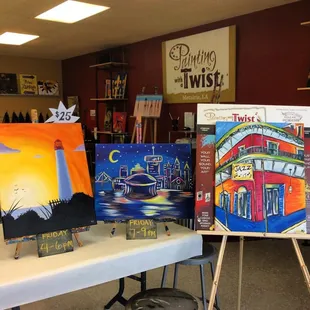 I love a good paint night. I will say my group did show up late and the instructor was able to catch us up with no interference to the class which was great. This painting with a twist was easy to find and had plenty of parking and options for your choice in canvas.