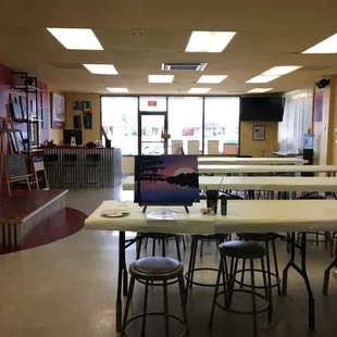 I recently came here for a birthday celebration, so it was just 7 of us. We brought finger foods and wine to drink. The space was a decent size, and there was lots of paintings on the wall. The artist already had our drawings, which was the phases of the moon ready. She walked us through each step, and she had a lot of patience. We are a "special" group, and we LOADS OF FUN. The more we painted, the more we sipped. Each person had a different version of the what the artist, but it was uniquely ours. I will definitely come back again for a session!
