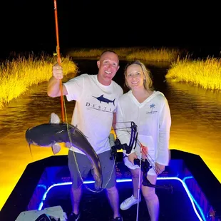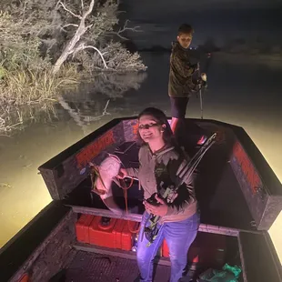 What a night! Definitely the best experience our whole week in Louisiana! This is a must if you are out this way. You will not be disappointed. I fish occasionally but never with a bow. The crew made me feel comfortable and were patient willing showing me the ropes. The night was beautiful! The crew was professional, know the area inside and out, feed folks with what was caught, and gave me such an outstanding memory. Thank you!! We will be back!