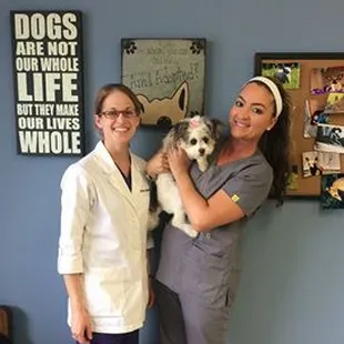 I had recently moved back from college and was looking for a new vet for my dog. I initially chose this place because it's close to my home and the reviews here sounded good. I can say that I do love this place and would recommend them to anyone. I've come here for my dog's nail trimmings and exams for his heartworm medication for the most part of the last six months but this week, I brought him in to get neutered. Prior to his drop off appointment, my dog had gotten into chocolate and thrown up a lot and he also got hurt at some point while I was at work. They told me that they didn't feel comfortable operating on him since he was already hurt but that they wanted to keep him for the day to examine him. Turned out that my little guy had a fever and something called intervertebral disk disease. They called me multiple times throughout the day while I was at work to keep me updated, they stayed a little after their closing hours to accommodate me getting there after work to pick him up, and they called me the next day after I took my dog home to check in and see how he was doing. They consistently welcome me when I come in the door and make sure that my dog's needs are handled to the best of their ability. I'm honestly just thankful that they care about my dog and other pets so well and I'm comfortable leaving my buddy in their hands. Definitely recommend.
