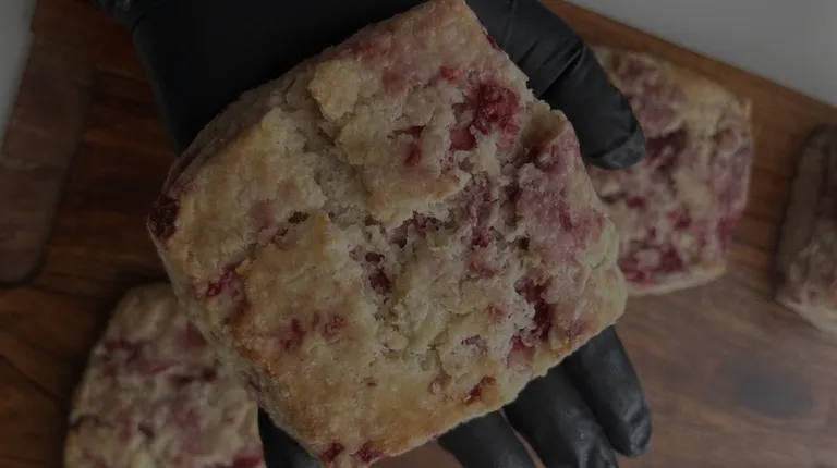 White chocolate glazed lemon raspberry biscuit