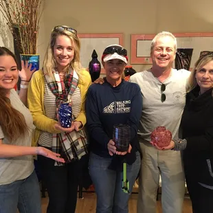I came here for a small party Friday night with some coworkers to make ornaments. I had never been here before but most of them had and they all raved about it.The place is located far back in a neighborhood in Algiers. It used to be an old movie theater. The front is the gallery where you can see all of their wares and purchase pieces already made if you like. The middle area above is where you choose your colors and sign your waiver form, etc. It is also a large waiting area with a table where you can put food and drinks for your party/gathering. There is a couch and chairs. The back area where the film used to be shown is the actual studio with the furnace and ovens. It is very hot down there!The staff is friendly and helpful as they guide you through the process of creating your piece. You have to leave your creation there and pick it up another day so it can cure.All in all, it was a very fun experience and I look forward to going back again.
