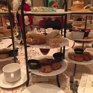 I brought my 5 year niece to this event. It was our first time. While we had a nice time, I didn't feel the event was done on the level that it should've been done considering that the price is $85 for adults, and $65 for kids.The Good:Really pretty room and decorationsEveryone was so nice! When my phone died, one of the servers used his phone to take a couple of photos, and then texted them to me. All of the characters were really friendly and fun!Great take-aways including tea cup and saucer, light up tiara, teddy bear, photo with Santa.Characters did a great job of making sure to interact with each child.The event flowed in an efficient way, and kept the kids' attention.The Bad:Finding parking was confusing. I pulled up to the front of the hotel and waited, but a valet person never came out. Finally I stuck my head inside and asked someone who directed me to their garage, which was around the corner. They should have some sort of sign at the front of the hotel that indicates this. Other Yelpers never figured out the parking situation, and had to find street parking.While everyone was really nice, I didn't find the service to be as polished as it should be for afternoon tea. There was much waiting on refills on drinks.The food was not very good. With the regular price, and with it being at a nice hotel, I expected more. The cookies were just cookies that you'd buy in a grocery store. The sandwiches were just mediocre, and some of the bread was stale. For the kids' food, it was just standard frozen and packaged stuff. I'm all about giving kids what they like, like chicken nuggets and mac and cheese. But for an event of this price and caliber, it should've been homemade and not the same frozen stuff we buy in the grocery store. The peanut butter and jelly should've been homemade, not prepackaged Uncrustables.I found the character's outfits to be worn looking. I did have a nice time spending time with my niece, and she seemed to have an good time, but in reviewing in all fairness, there's no way I would spend $150 for this event. It's just not worth that. $160 once you add in parking.