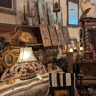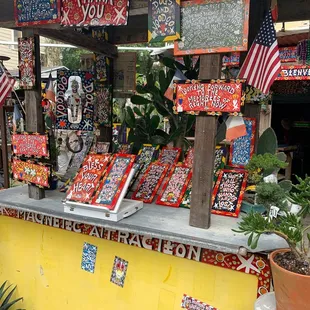 Disclaimer...I hate this art. It's gaudy and obnoxious. But people here seem to love it. It's usually colorful blithe sayings like "Unrully children will be cooked and eaten." In addition to the plethora of crappy folk art, and mass produced wall garbage there is an antique shop attached. It has lots of dried flowers scattered about on stacks of brown smelly furniture. Bonus star for the dried flowers and cool crown adornment near the front door.